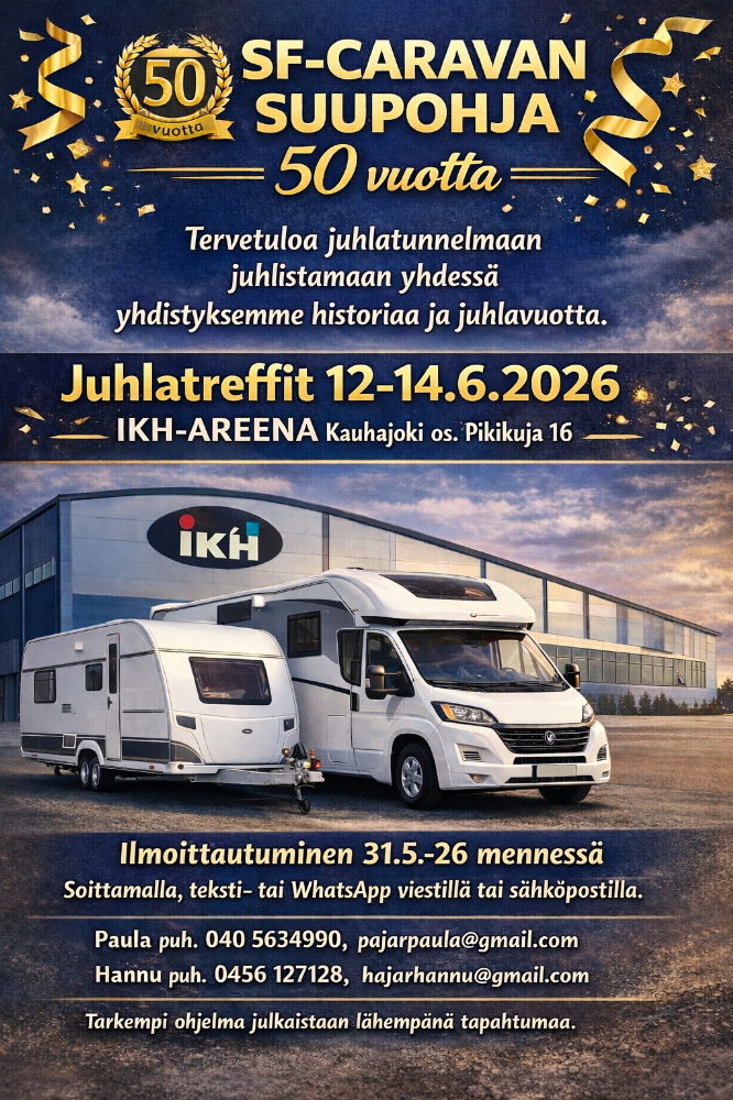 SF-Caravan Suupohja 50-vuotisjuhlatreffit 12.6–14.6.2026 IKH-areena Kauhajoki
