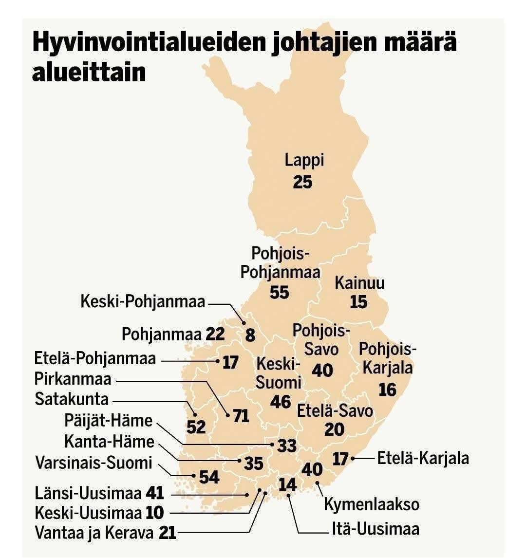 Tuossa kuulin, että jonkin hyvinvointialueen johtajien palkka kuussa oli 60 000 euroa. Paljonkolie vuodessa.