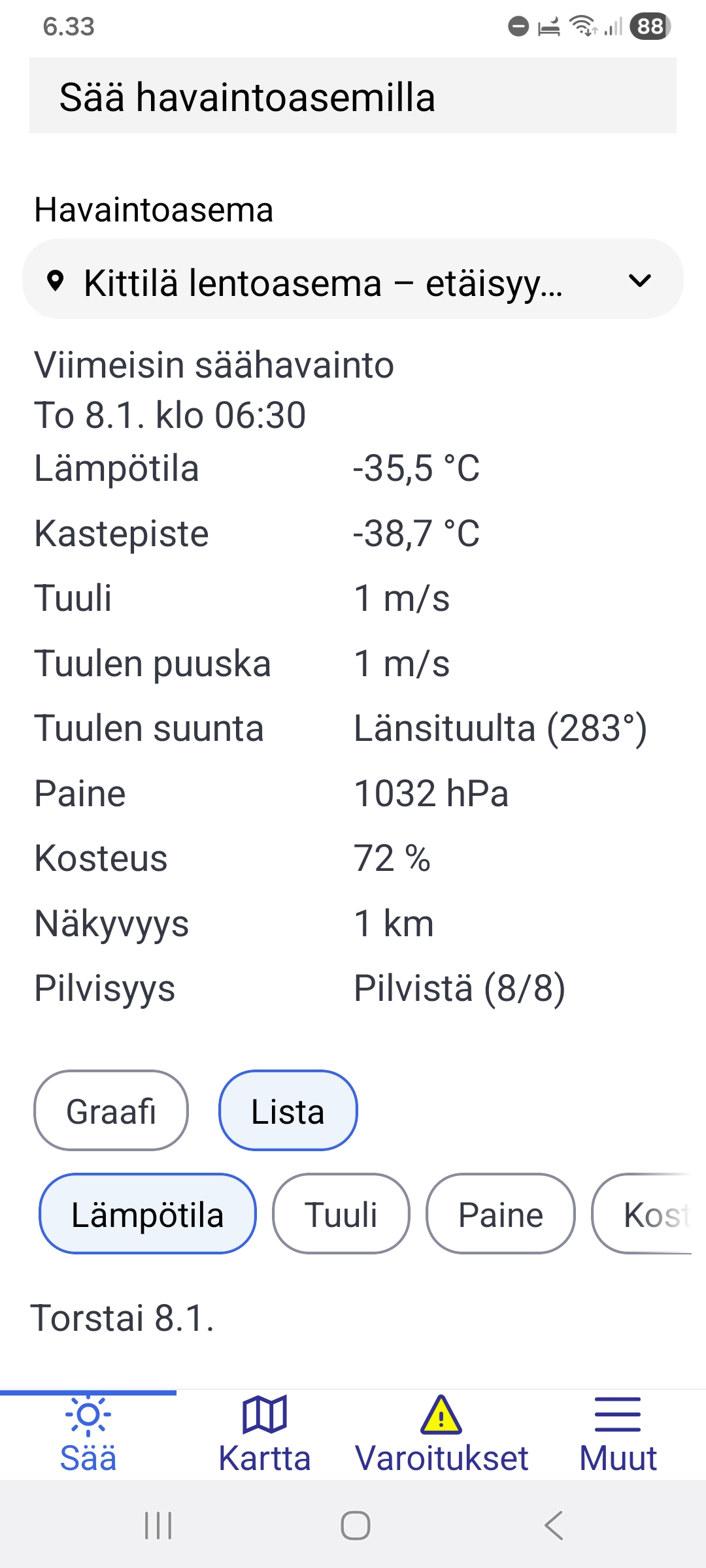 Suattaapi olla ja onkin 🥶 ... laajassa Lapinmaassa ... ny ei kannata kielellä lipasta rauta kankea, ei vähääkää 🥵 ja tankissa ois hyä olla talavi laatu tai jopa arktinen tiisseli. Yöks mänisin roikka paikalle, ihan vain varoiks. 🤣 H