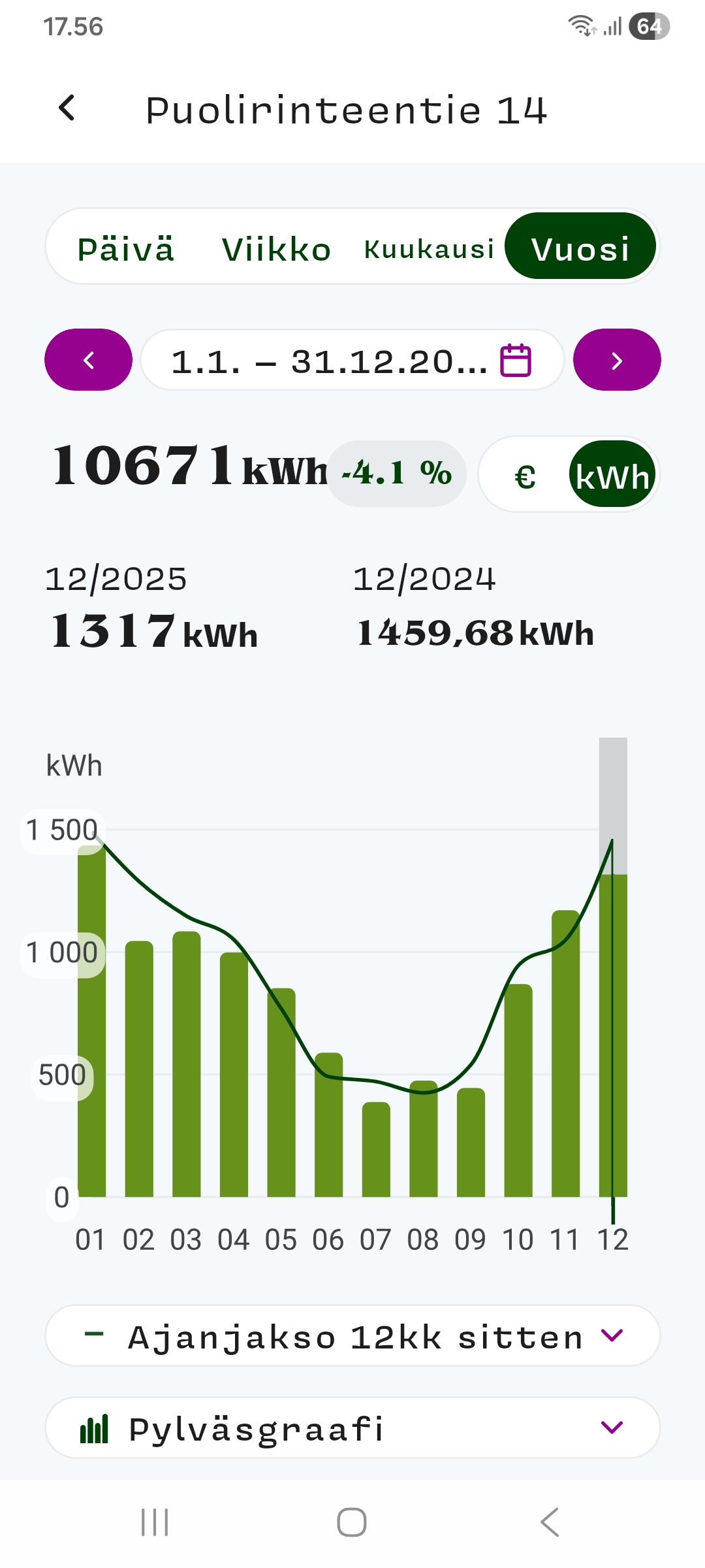 Sähköä meni 2025 n.10670kwh + 5hm³ koivu kilipuroita, tupa 125m² LEVILLÄ.