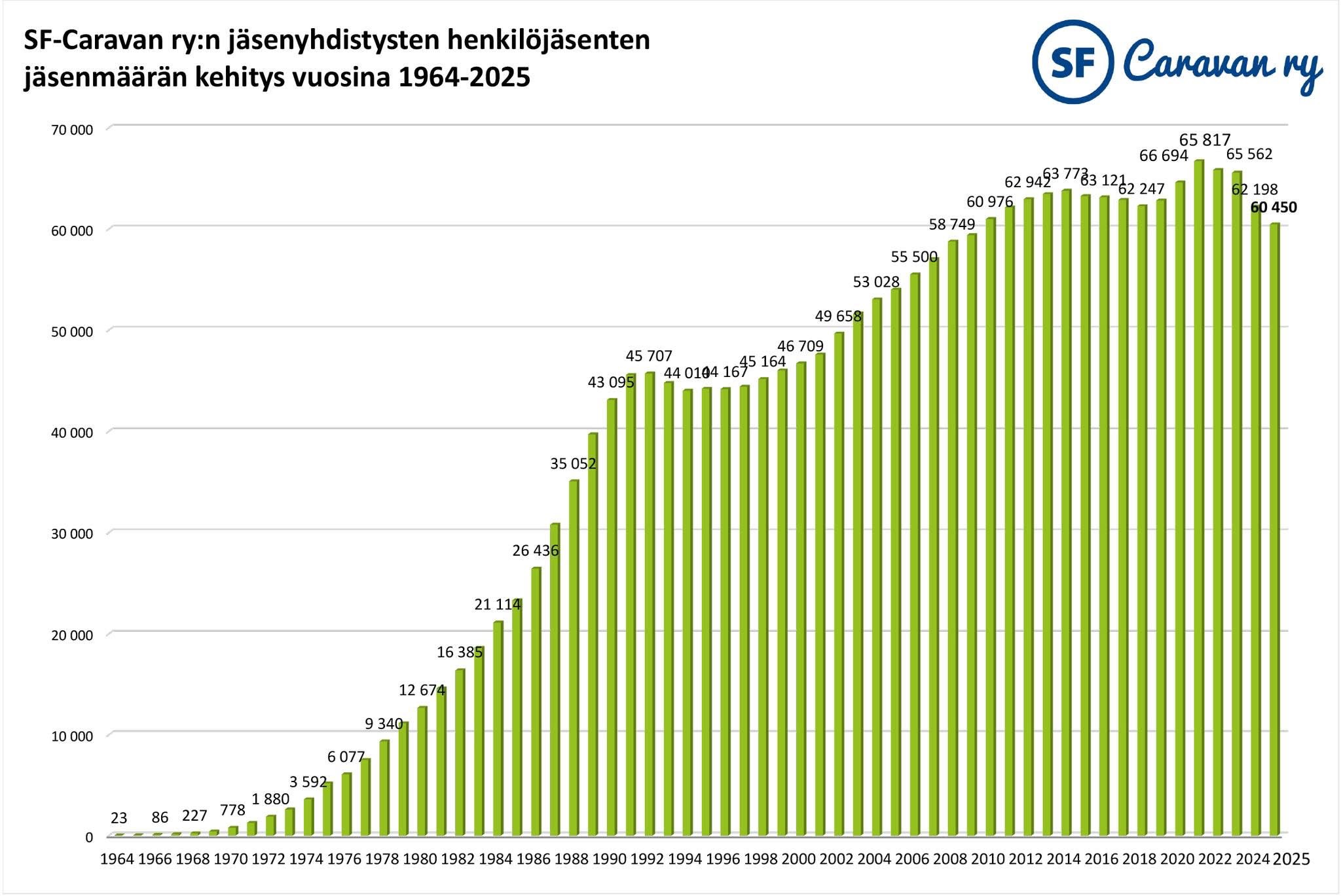SF-Caravan ry:n jäsenmaksu koostuu sekä paikallisyhdistyksen että liiton osuudesta, ja