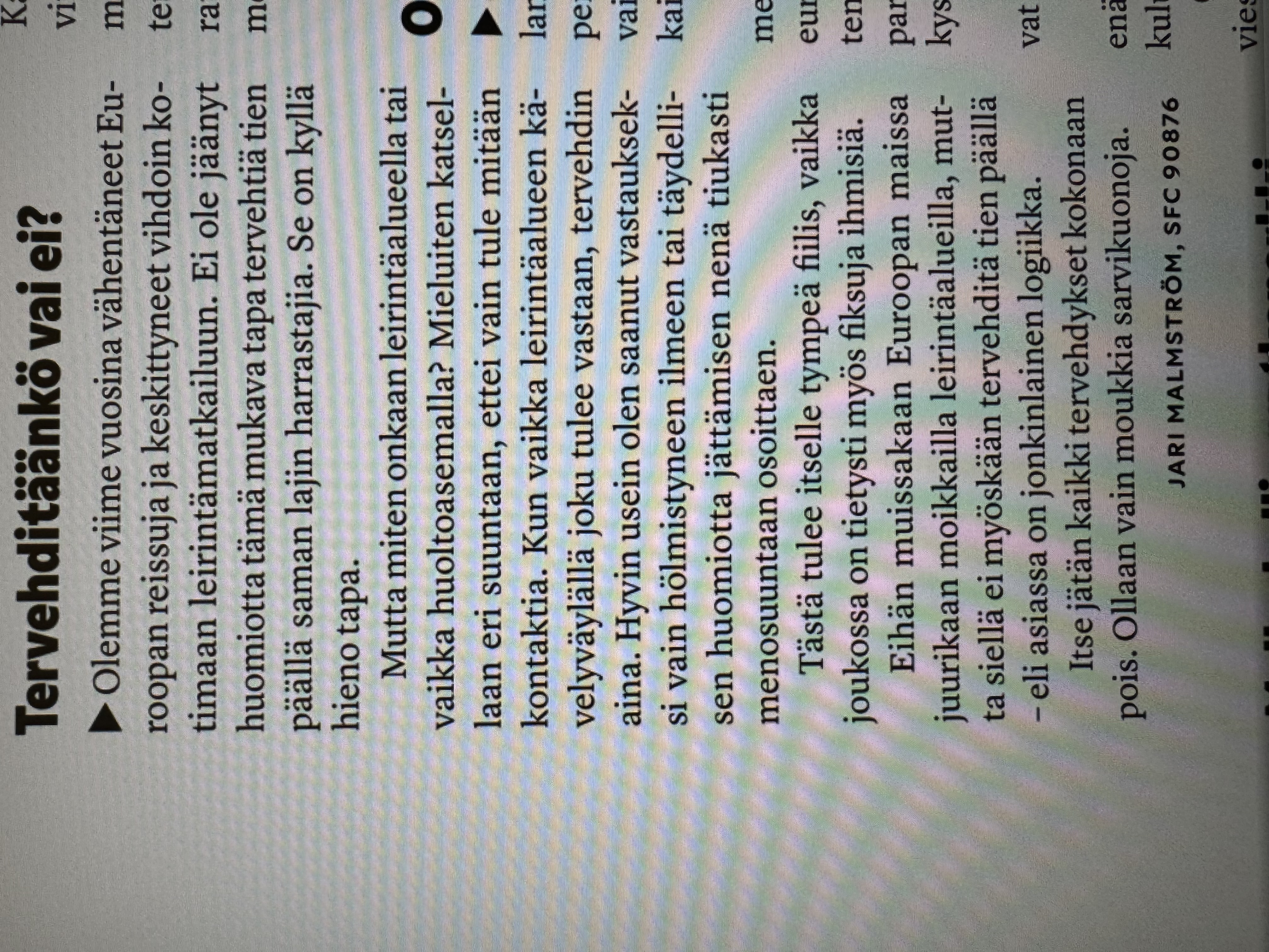 Tuo vapaa liikkuminen ja harvakseen leirintäalueilla käynti kun on tapa liikkua.