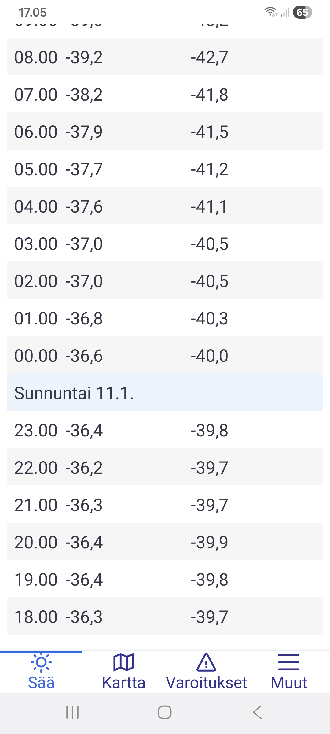 Normi talavinen keli laajassa Lapinmaassa. Joskus lyhempään joskus taas vähin pitempään. Levi -36' 🥶