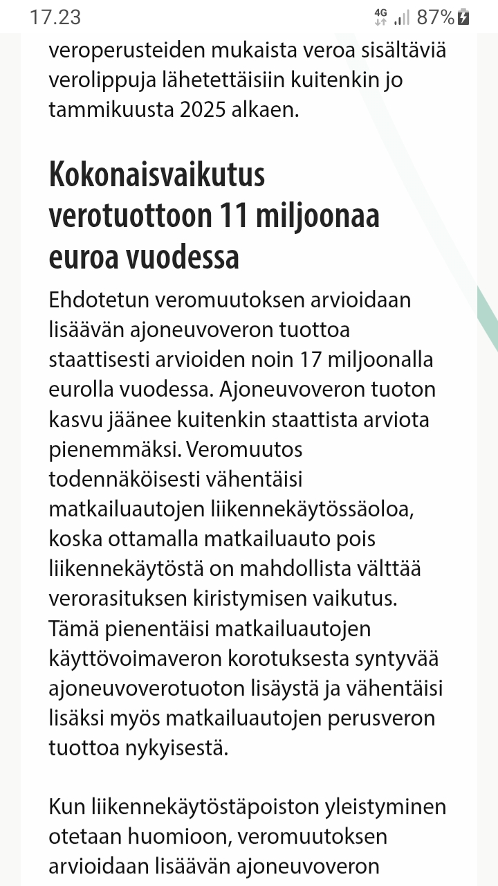 Niin tää kirjoitus tuli syystä, olemme 2007 ostaneet matkailuauton ja 2025 asti ei kertaankaan ole ollut pois liikennekäytöstä kun liikumme paljon , nyt 01.01-26 pois ja nyt viikonloppureisulla tulevana sunnuntaina pois käytöstä, ei ole ketään missään, kiitos hallituksen mistäs muustakaan tää johtuu kun 600 % korotuksista, miten käy leiritä/ caravanliikkeiden ym. Tulimme Tuurin Onnelaan jokin aika sitten, 5 autokuntaa paikalla, normi 15-30 ennenvanhaan eli nyt auto pois liikenneläytöstä ja selaamaan josko lähtis aurinkoon