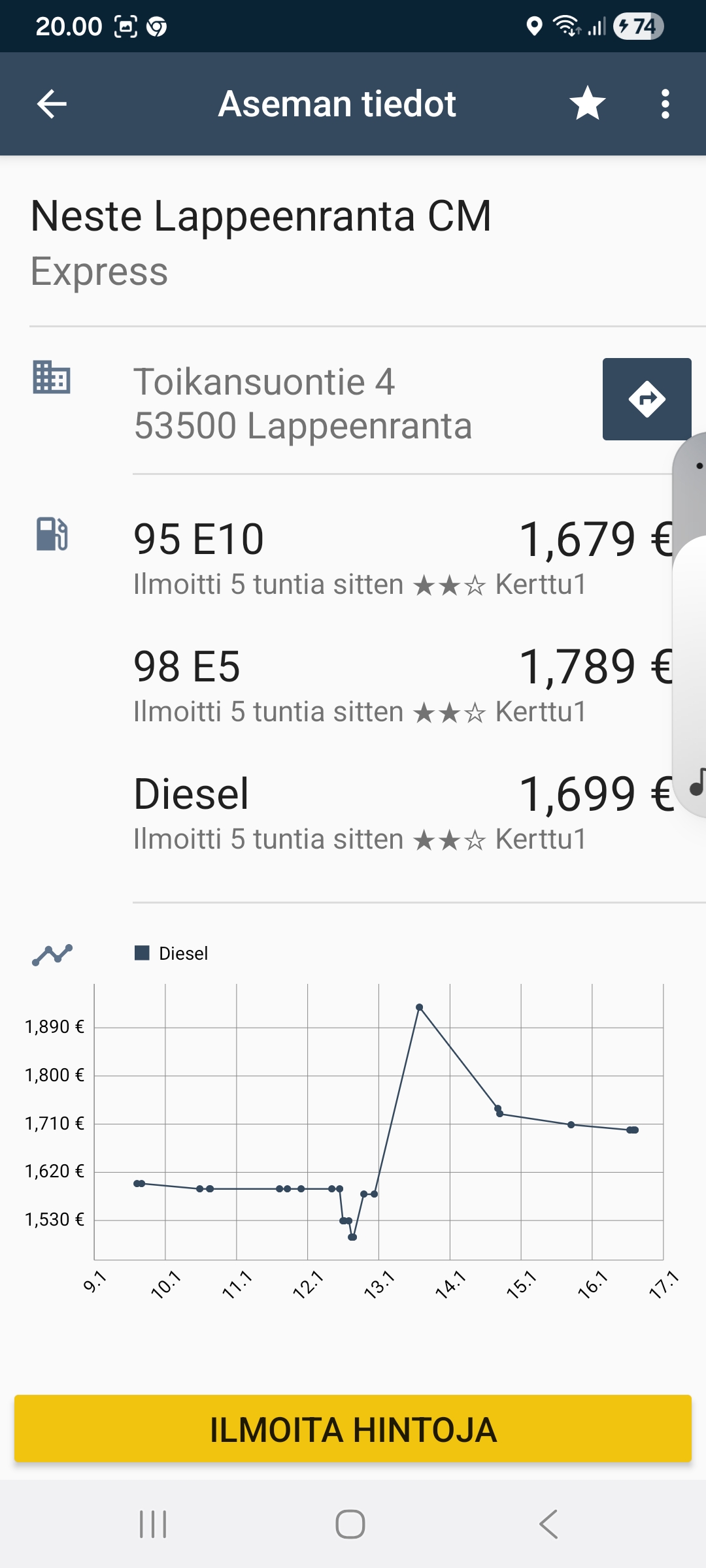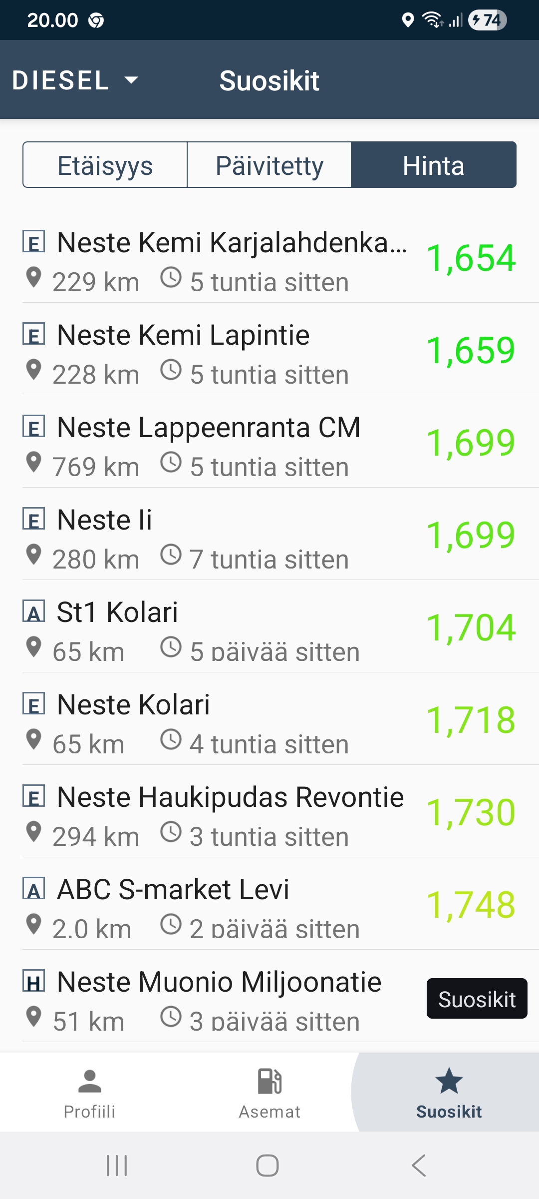 Disel Kurikas tänään 1,83€ ?