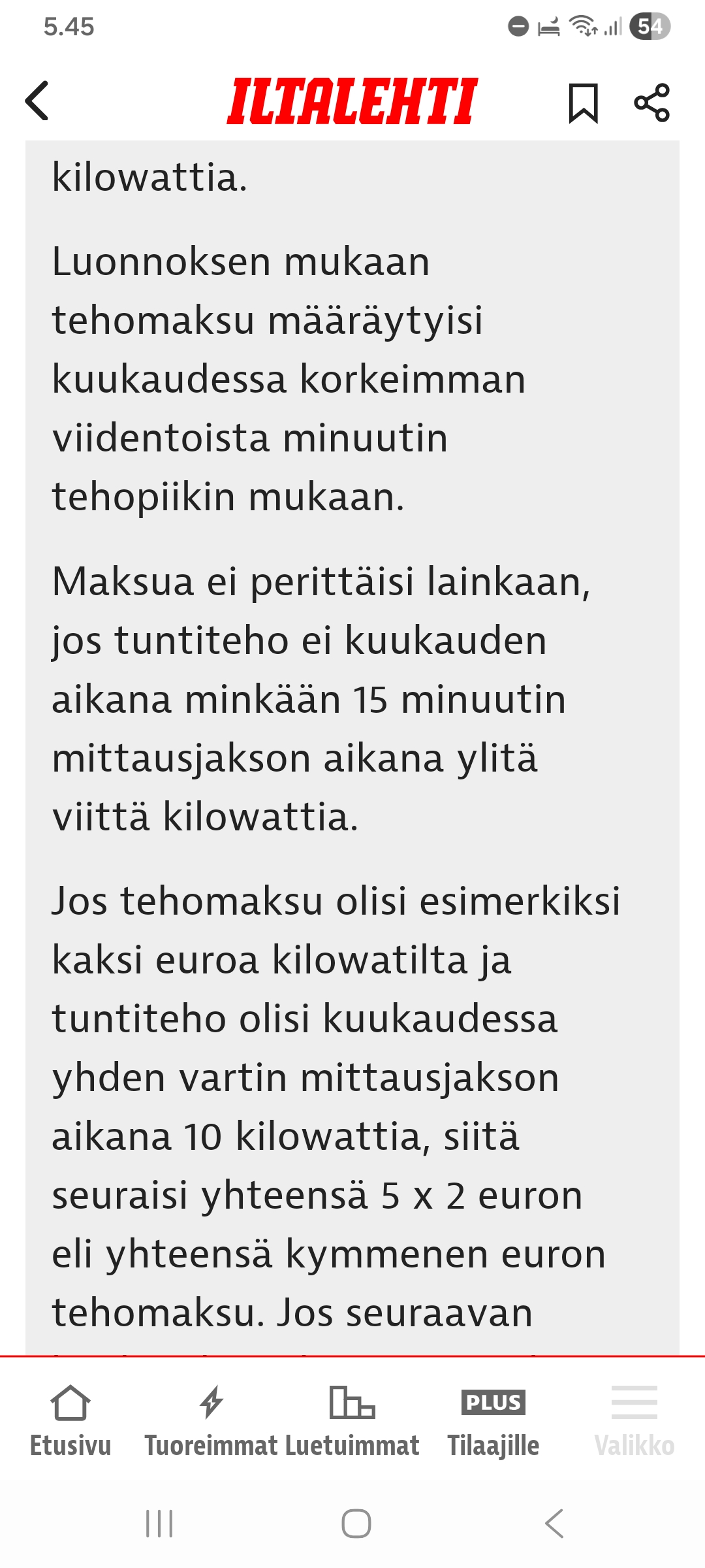 On vaikea nähdä, miten tämä palvelisi energiansäästöä tai kulutusjoustoa. Päinvastoin: tehomaksu rankaisee nimenomaan niitä, jotka yrittävät toimia järkevästi. Kun kulutusta ohjataan halvoille tunneille, kaikki laitteet käynnistyvät samaan aikaan – ja juuri silloin syntyy se piikki, josta tehomaksu veloitetaan. Yksi ainoa 15 minuutin jakso voi nostaa koko kuukauden laskun.