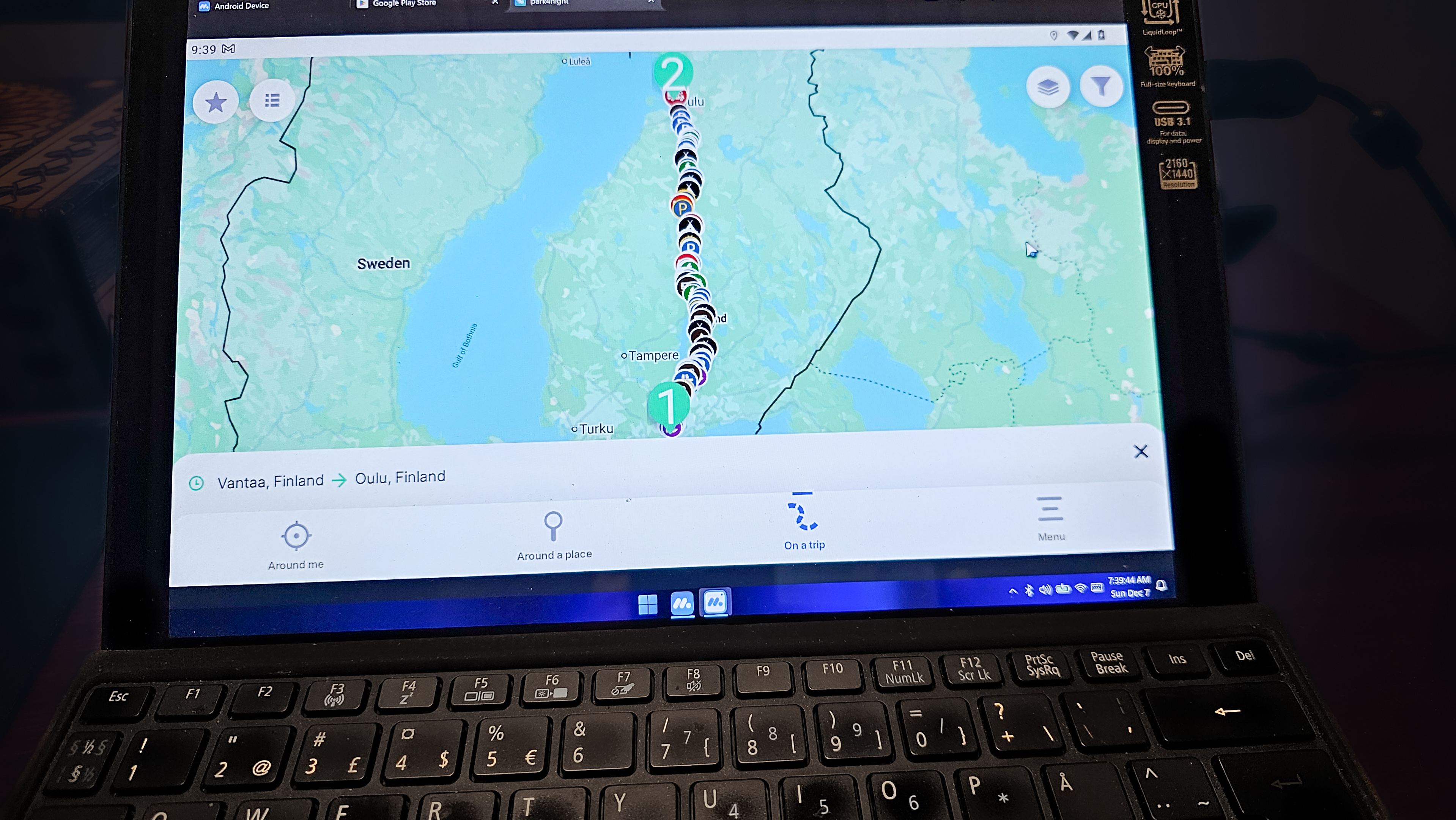 Nyt kun pystyn palauttamaan koneen puhtaaseen tilaan helposti USB-tikulta, kokeilin yhtä ja toista mielenkiintoista, jota en aio ykköskoneelleni asentaa. Yksi tällainen kokeiltava asia on Windows-koneessa toimiva Android-emulaattori. Näitä on paljon, minulle sopivimmalta tuntui Mumuplayer 12 (asennusohjeita löytyy YouTubesta). Tässä se nyt on: Park4nightin Android-versio toimii Windows-läppärissä Android-emulaattorin päällä ja näyttää kaikki taukopaikat Vantaan ja Oulun välillä.