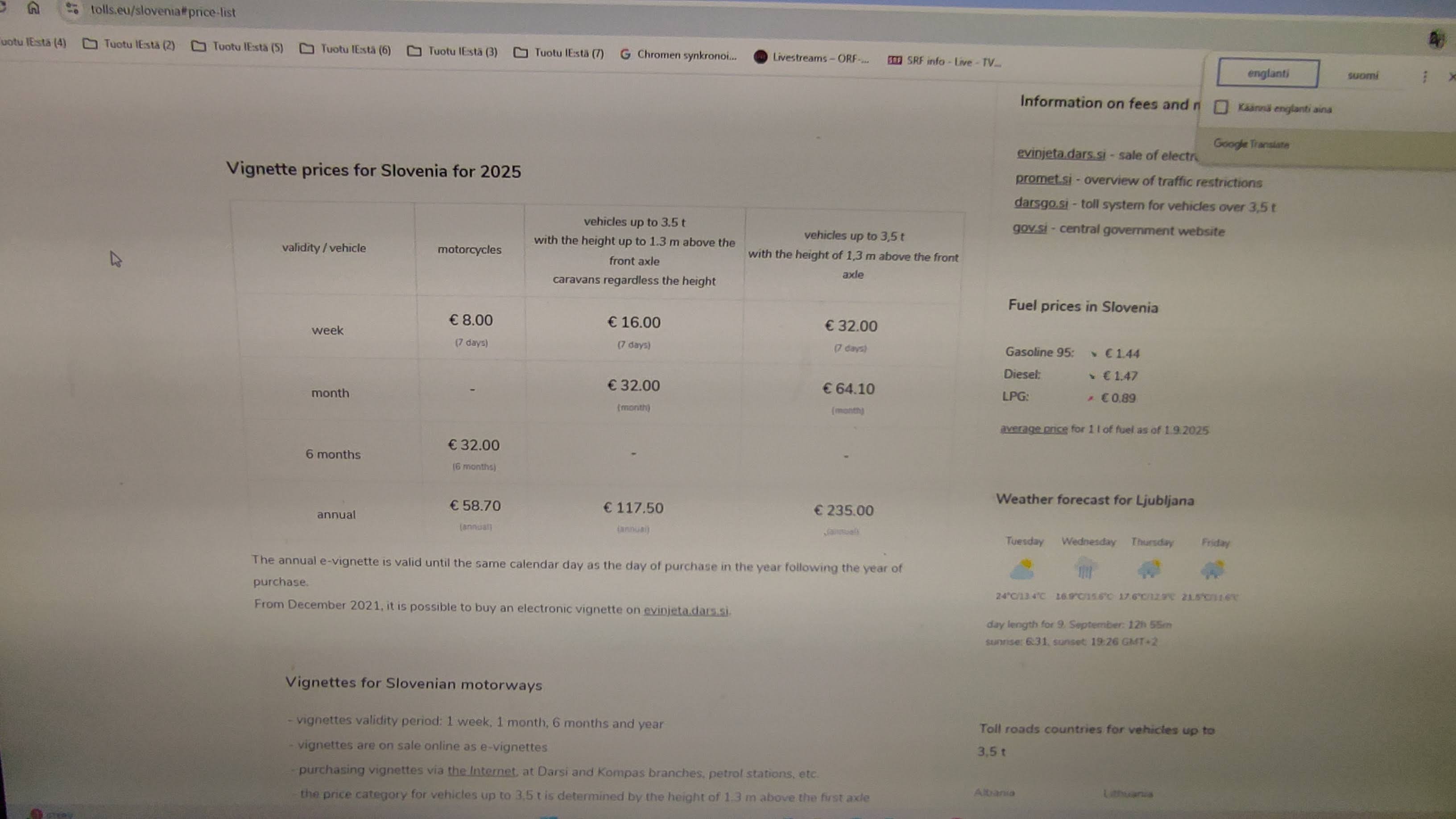 Sloveniassa annettiin helpotusta matka-autoille, enää ei ole etupyörän kohdan korkeusrajoitusta 1,3 m joka nostaisi seuraavaan luokkaan. Tosin rekisteriote ei tunne käsitettä matkailuauto vaan kaikki matkikset ovat henkilöautoja. Itse olen maksanut halvimman mukaan, vielä muutama vuosi sitten kalliimman.