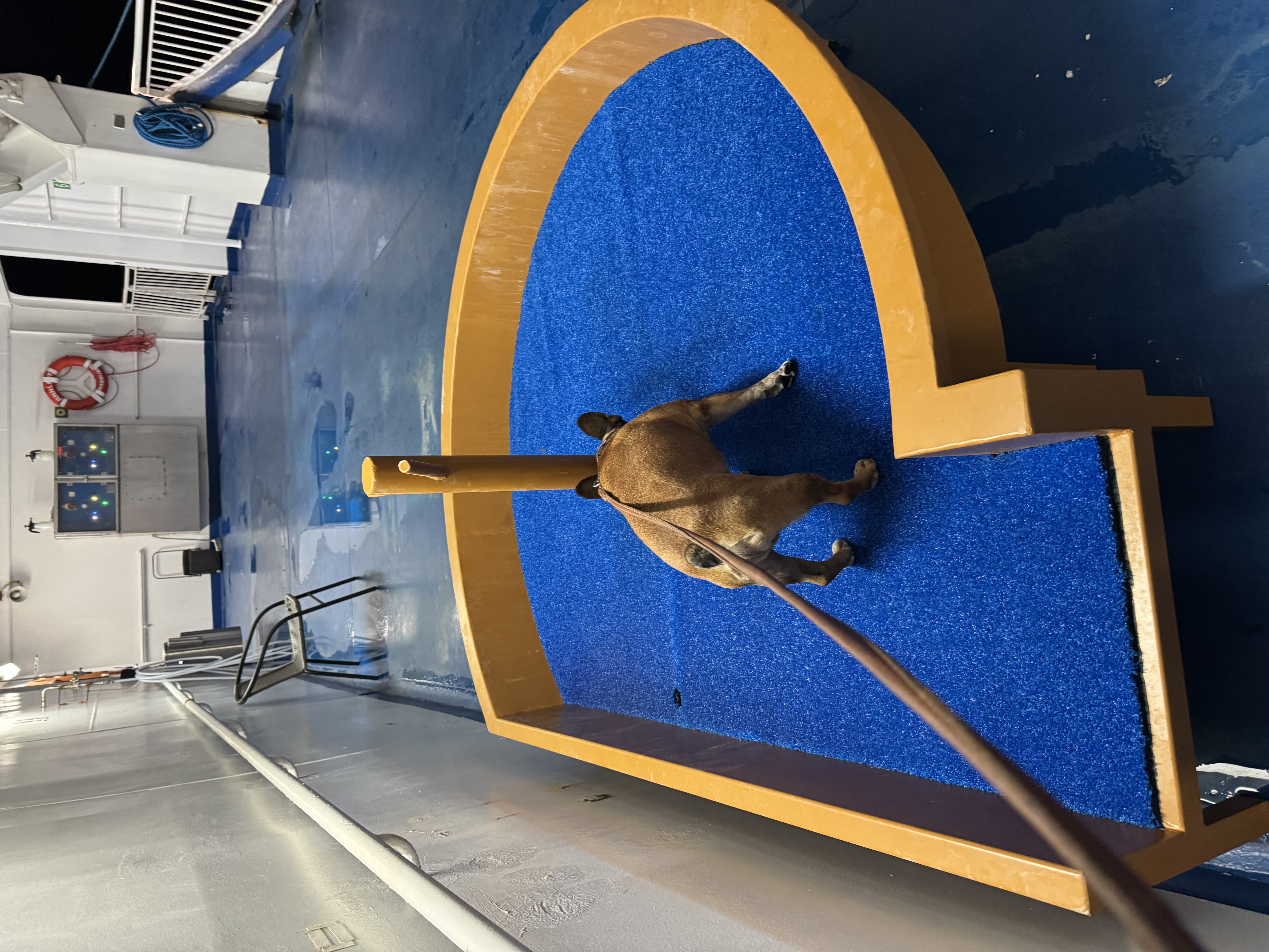 Mitä hurtta tykkää pitkästä matkasta laivalla? Sujuuko hyvin? Naantali- Kapelskär laivalla hyvä mini koirapuisto.