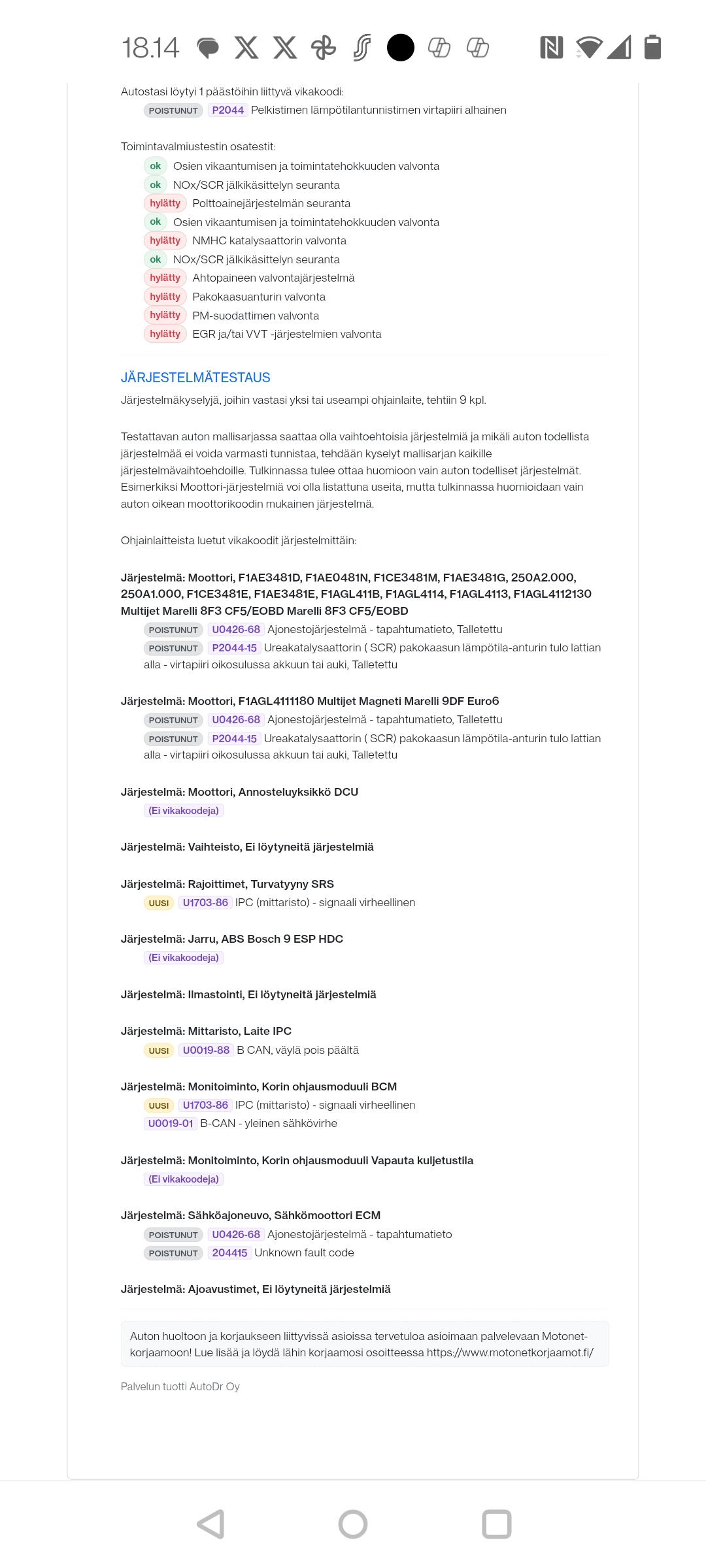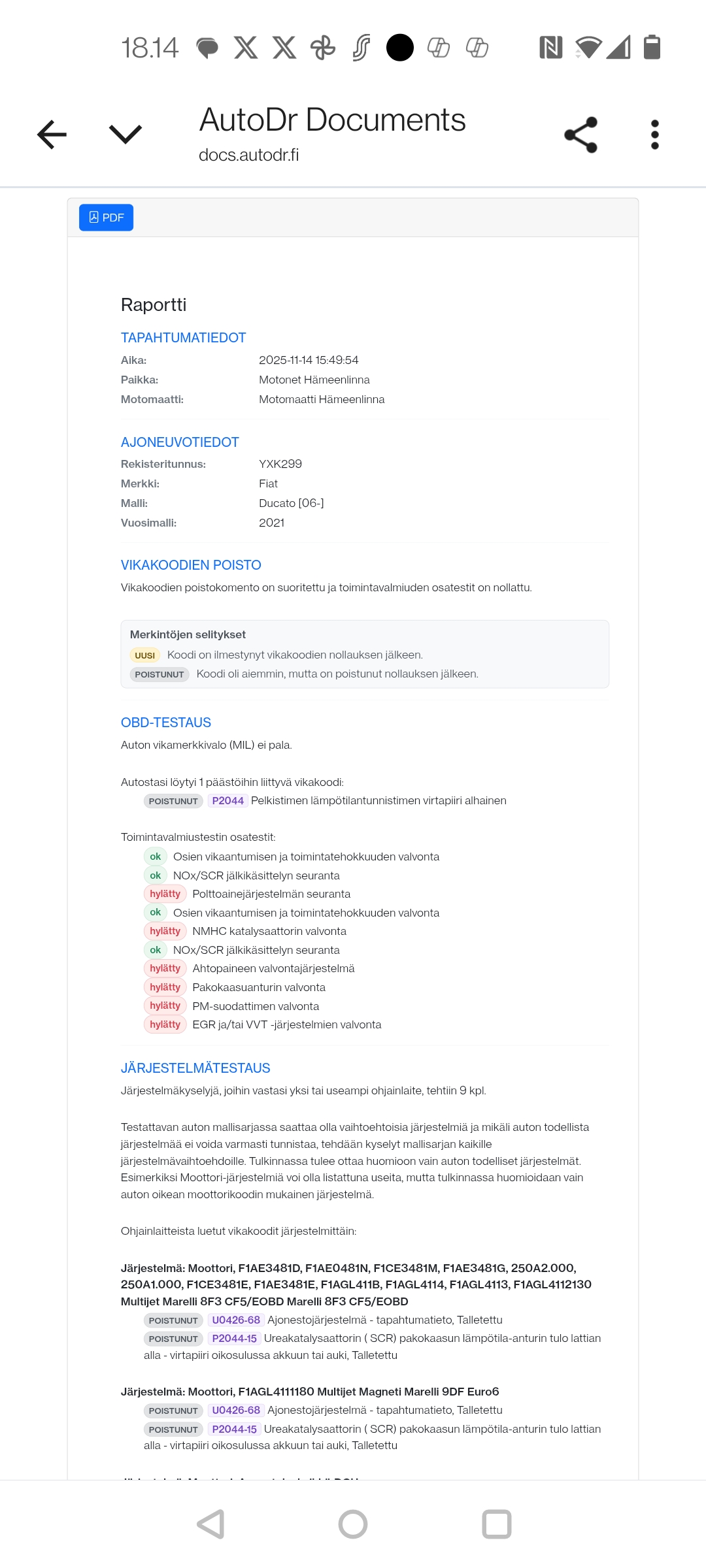 Moro, löytyskö palstoilta ducato tietäjää käväsin ottamassa laajan skannauksen 2021 ducatosta , lähinnä sen takia kun syttyi tuo moottorin vikavalo keltaiseksi. Oma epäilyni on tuon tekijäksi on tuo thermo 1000 letkulämmitin? Valo ilmestyi heti kun lämmitintä olin käyttänyt. Olisikohan tuohon mitään tehtävissä? Lisäksi osaisiko kukaan heittää viiltävää analyysia noista obd skannauksen tulosteista eli onko noissa jotain ihmeellistä?