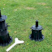 Meillä ollut nyt muutaman vuoden kaksi kpl. haitari tunkkeja ja helppo nostaa veivilläkin ylös tai akkuporakoneella. Vesivanerilevyn palat maahan aina mukana, eikä nuo paljon tilaa vie. 19€/kpl tunkit Biltemasta.