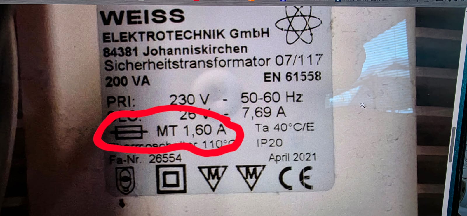 Aika jännä että muuntajassa oli ehjä sulake, luulisi että se palaa ensin ennenkuin muuntaja.Toinen asia oli että noita 26v muuntajia ei tuntunut löytyvän koko maalimasta,otin yhteyttä tuonne Weiss firmaan ja vastaus oli että eivät voi myydä verkkokaupassa kun on sopimus Tabbertin kanssa joka noita Weinsbergejä tekee.24v olisi löytynyt vähän joka putiikista mutta halusin tuon mikä siihen kuuluu vaikka olikin noin 3 kertaa kalliimpi kuin nuo 24v.Pro caravan tilasi muuntajan ja oli muutenkin hyvä palvelu.Että näin.