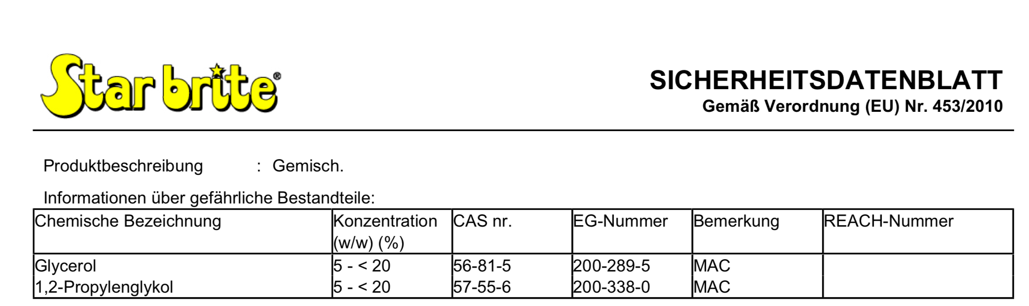Tarkoittaako tuo käyttöturvallisuustiedotteen info tosiaan sitä, että propyleeniglykolipitoisuus on niinkin epämääräinen kuin 5-20% ?