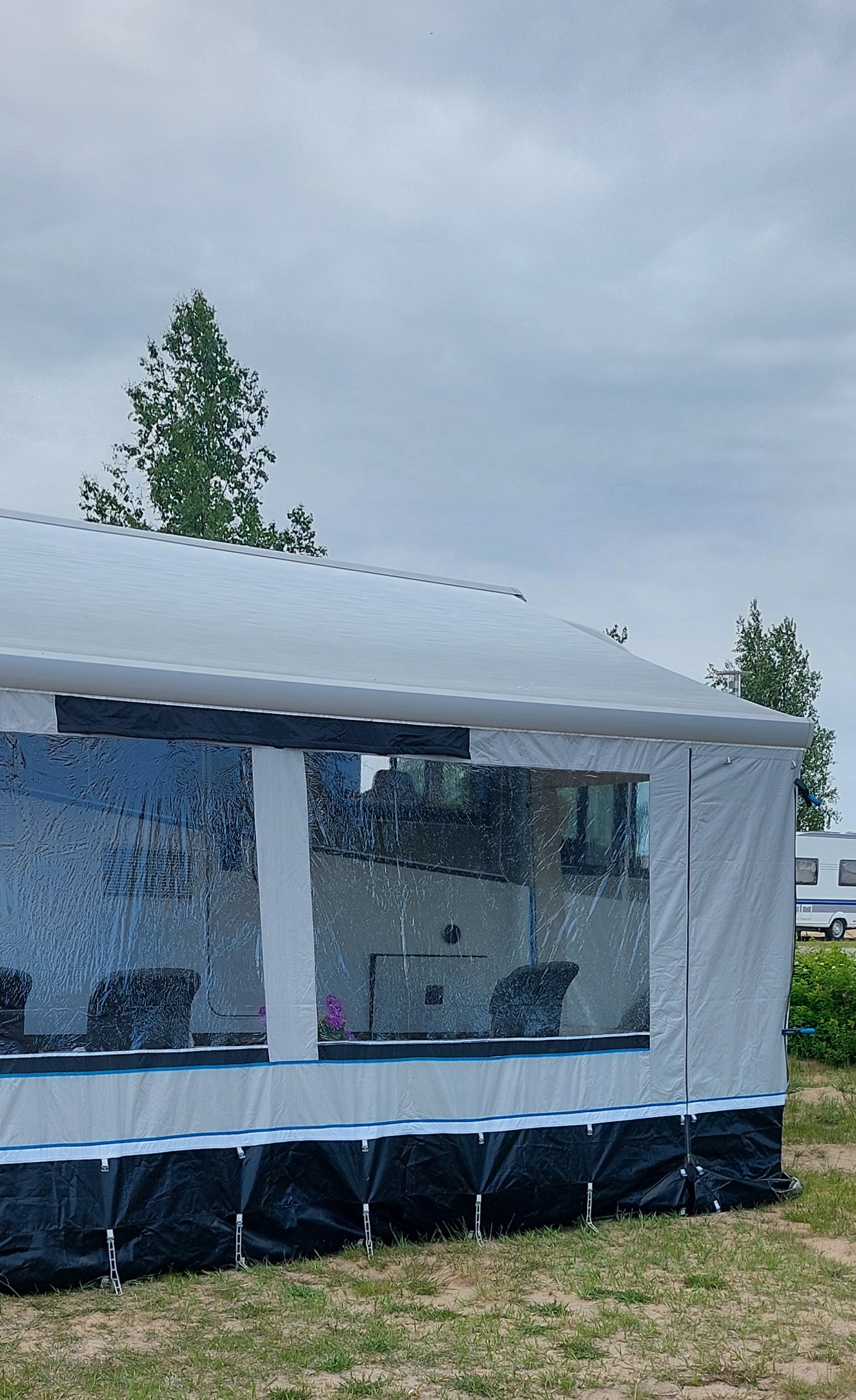 Myydään tarpeettomana Obelinkin 5,30 pitkä, markiisiin kiinnitettävä etuseinä. Käytetty 5 kertaa.