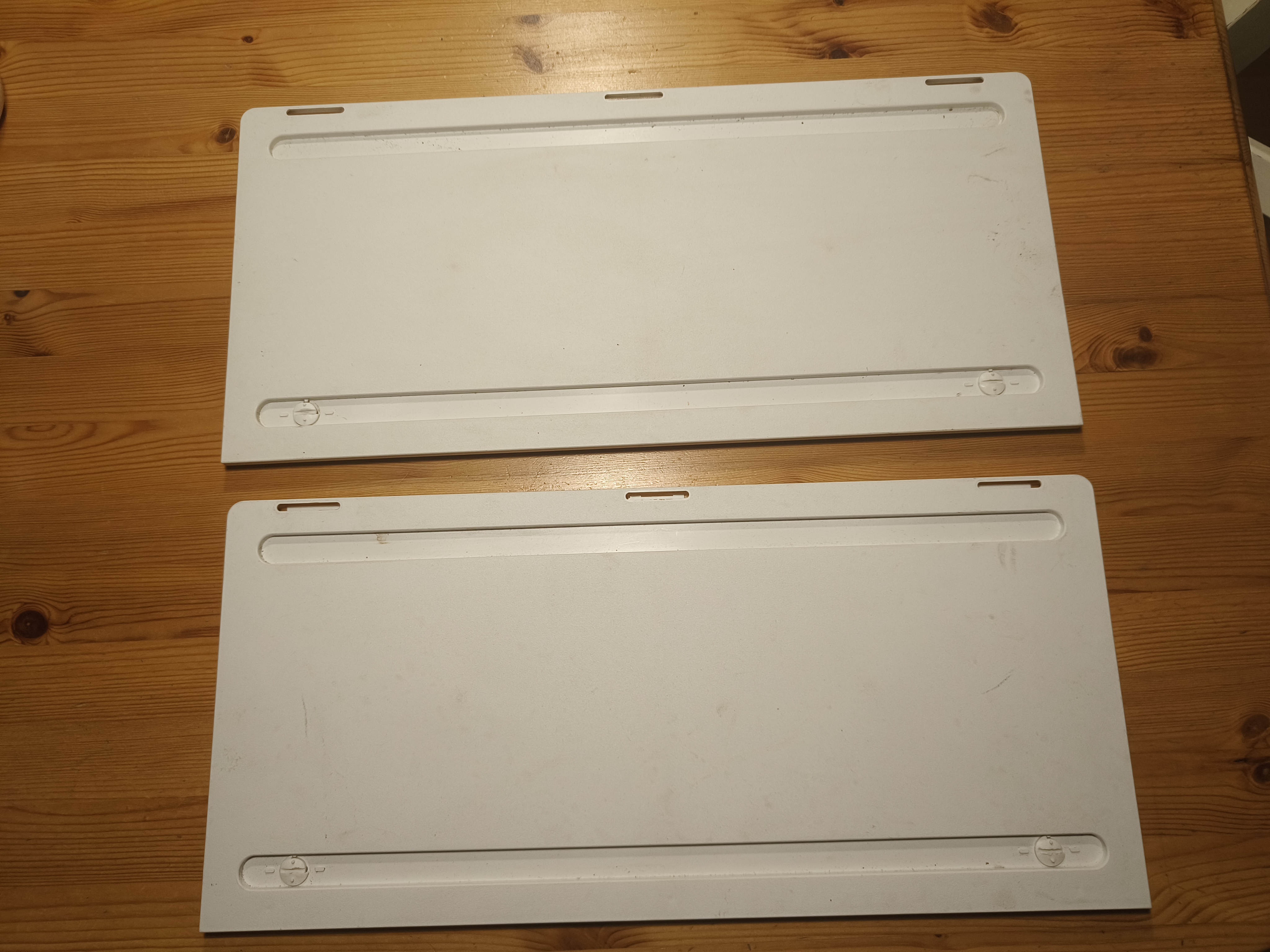 2 kpl vaaleita jääkaapin suojalevyjä 480x225. Siistit, ehjät, pidikkeet paikallaan.
