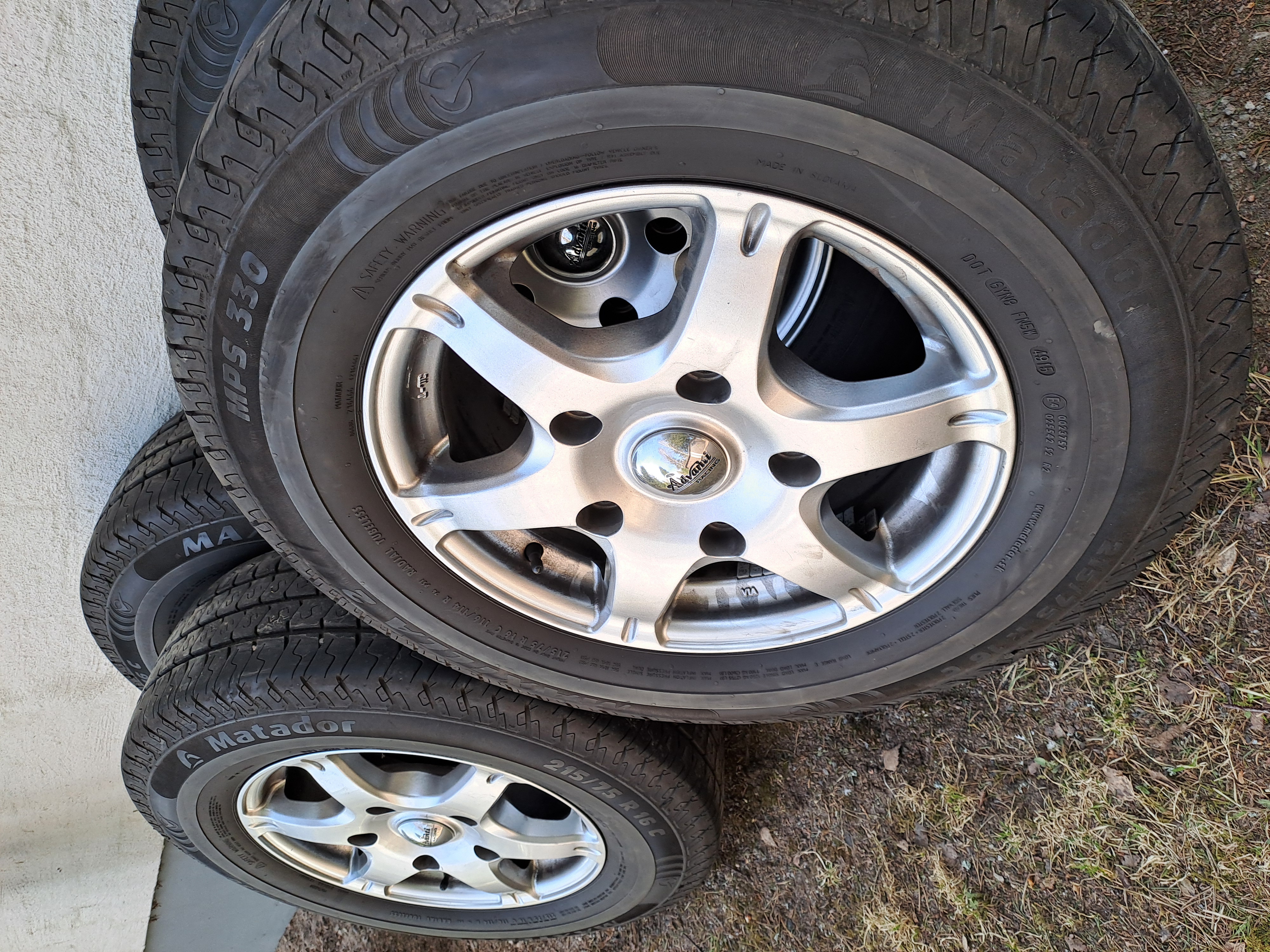 Myydään matkailuauton kesärenkaat aluvanteilla 215/75 R 16C 116/114 R
