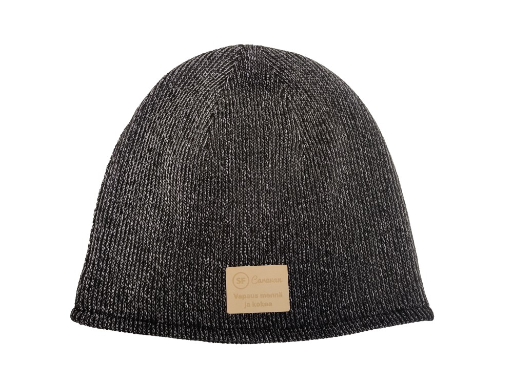 Tuotteessa ommeltuna tyylikäs SF-Caravan-merkki.