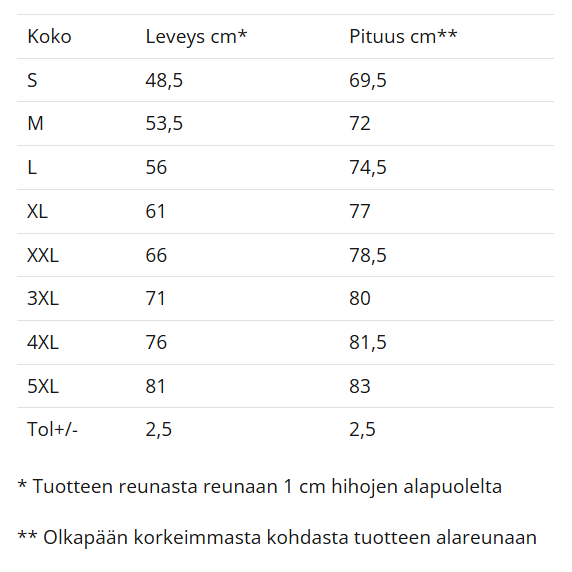 • Puuvilla/Lycra®-kaula-aukko olkapäältä olkapäälle vahvistetulla saumalla