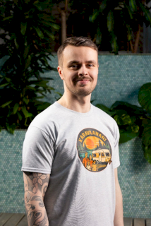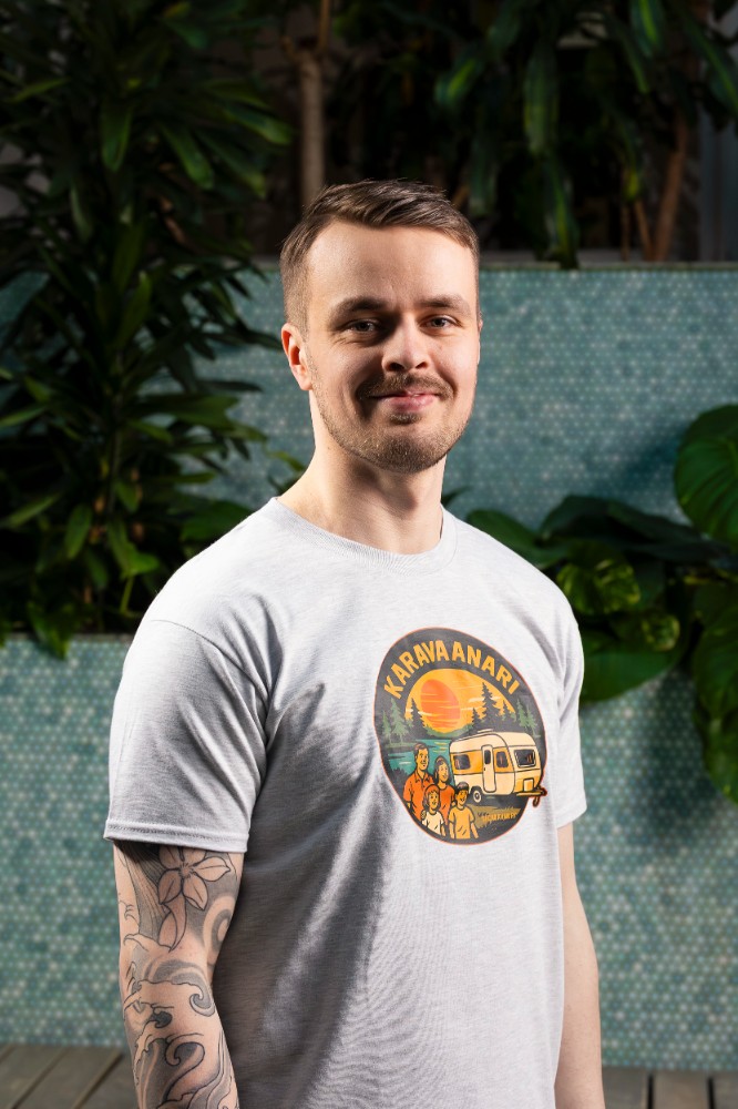 T-paita on miellyttävän pehmeää materiaalia. Paidassa on edessä iso, värikäs painatus.