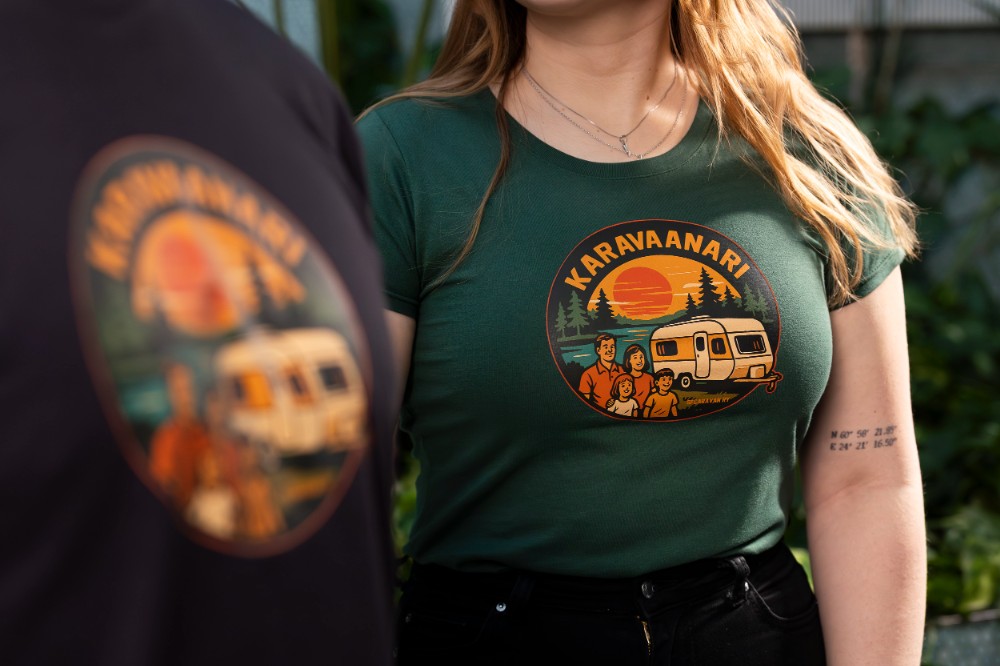 Paidassa on edessä iso ja värikäs painatus.
