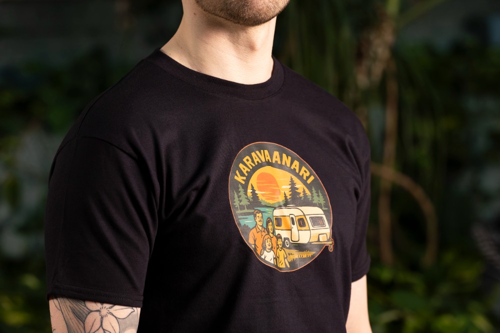 T-paita on miellyttävän pehmeää materiaalia. Paidassa on edessä iso, värikäs painatus.